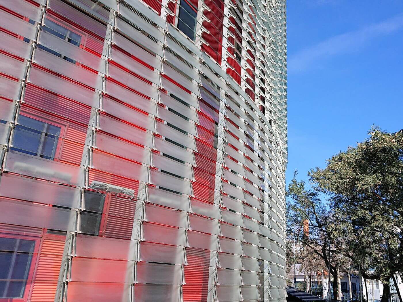 すっかりバルセロナのアイコンのひとつとなったジャン・ヌーベルの現代建築。水道局の建物アグバールAgbarとして親しまれたあと、もうとっくに水道局の建物じゃなくなったのに、