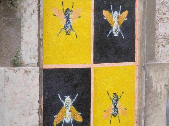 街中にも、よーく注目してみると、ハエの壁画が??