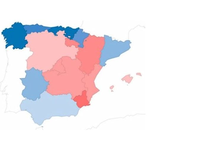 スペインの自治州別の降水量ランキング